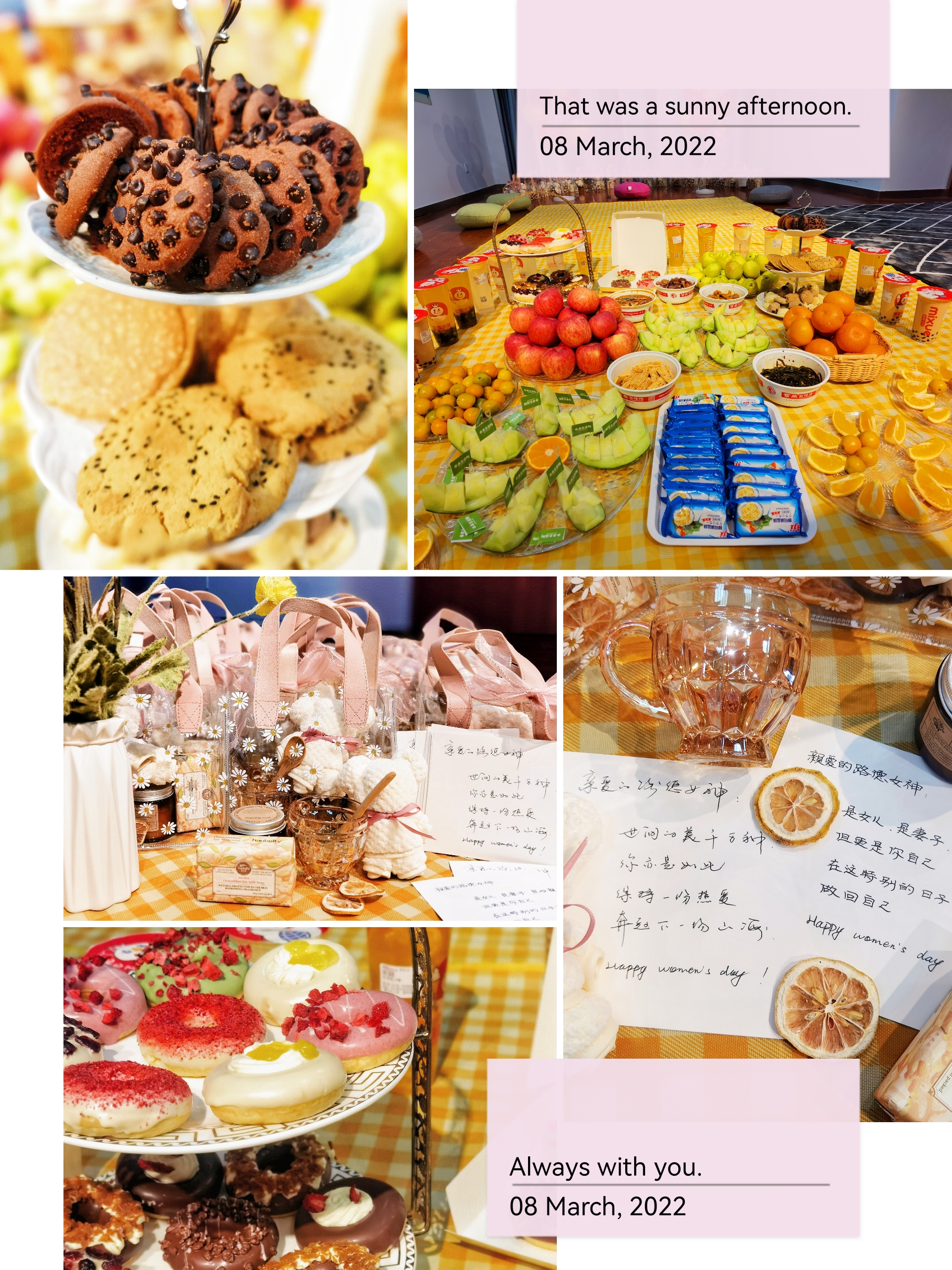 除了鲜花,精致的甜品和礼物当然也少不了,所有的细节都透露着公司对女职工的满满关爱,男同胞们被吸引而来,直呼今天想魂穿做女生。