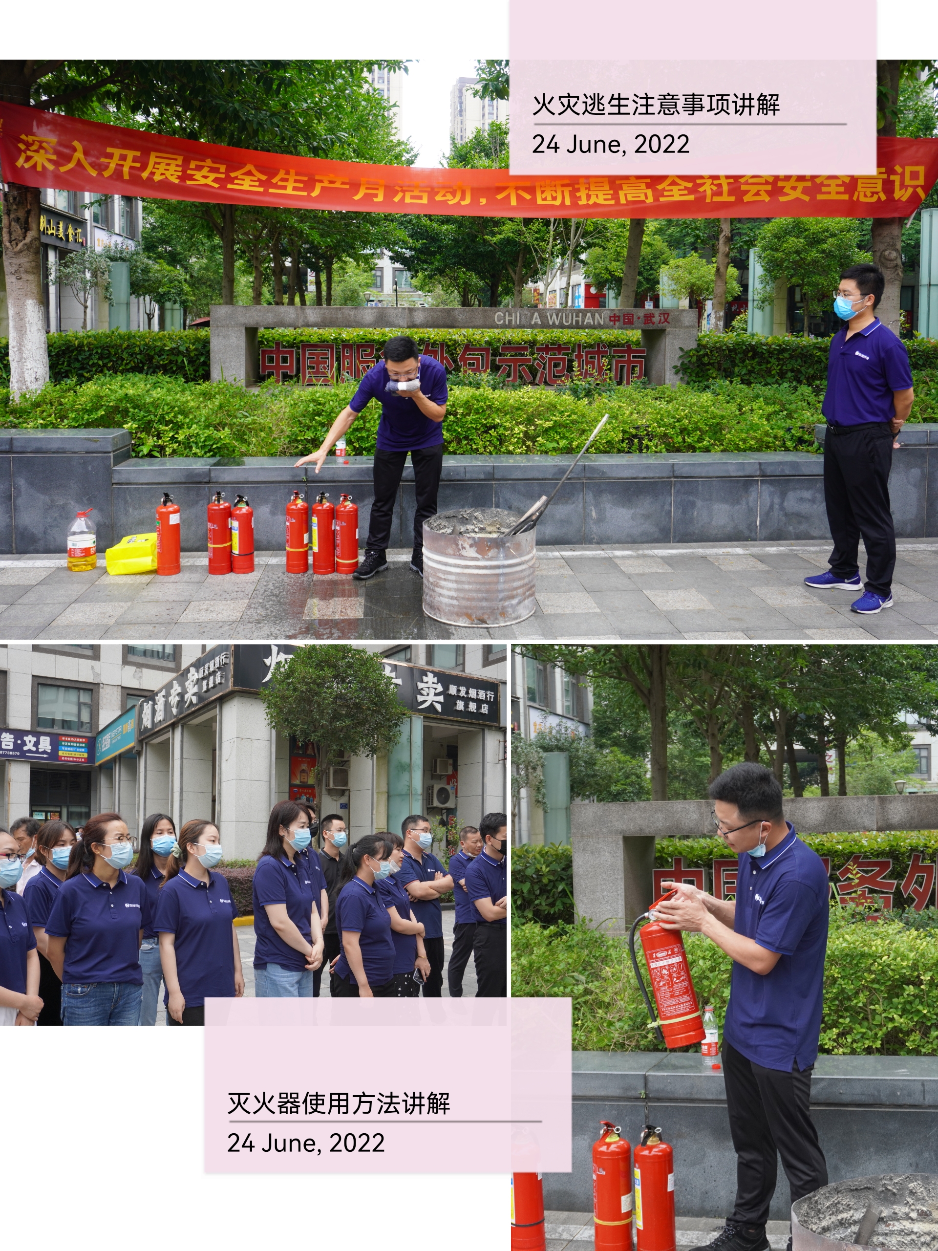 待全员到达疏散地点后,安全管理部讲解和演示了火灾现场逃生的正确操作,以及手提式干粉灭火器的原理、使用方法及注意事项。各位同事也踊跃参与实操,掌握了消防器材的操作要领,牢固树立“生命至上,安全第一,预防为主”的思想,学习正确的逃生方法,提高自救能力。