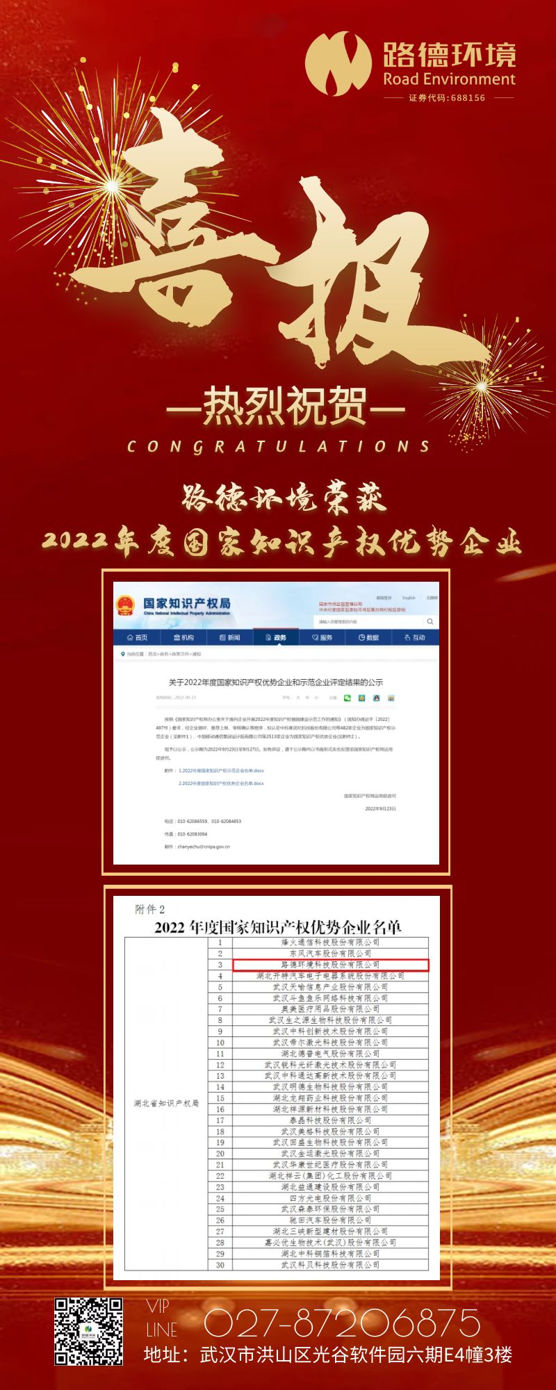【乐鱼(中国)·喜报】热烈庆祝乐鱼(中国)环境荣获2022年度国家知识产权优势企业