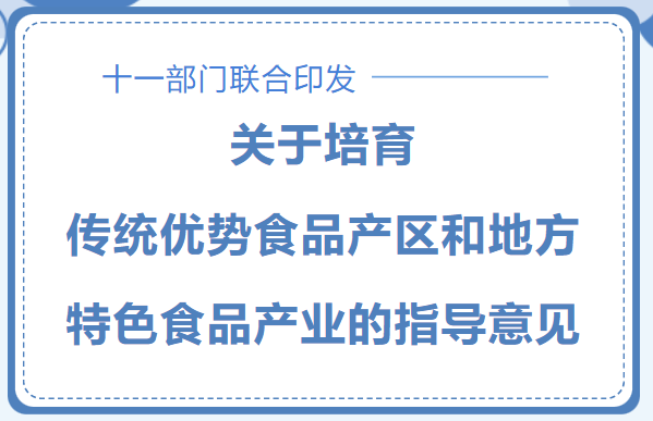 3月29日,工业和信息化部等十一部门联合印发《关于培育传统优势食品产区和地方特色食品产业的指导意见》。