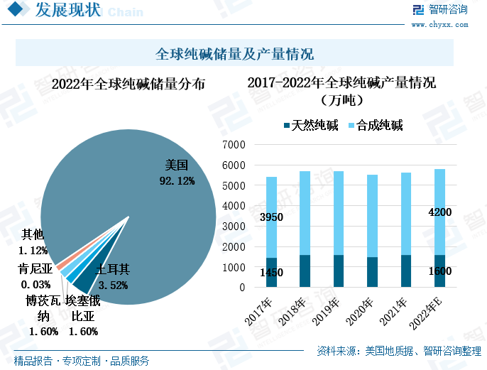 全球纯碱储量及产量情况 图片来源/智研咨询