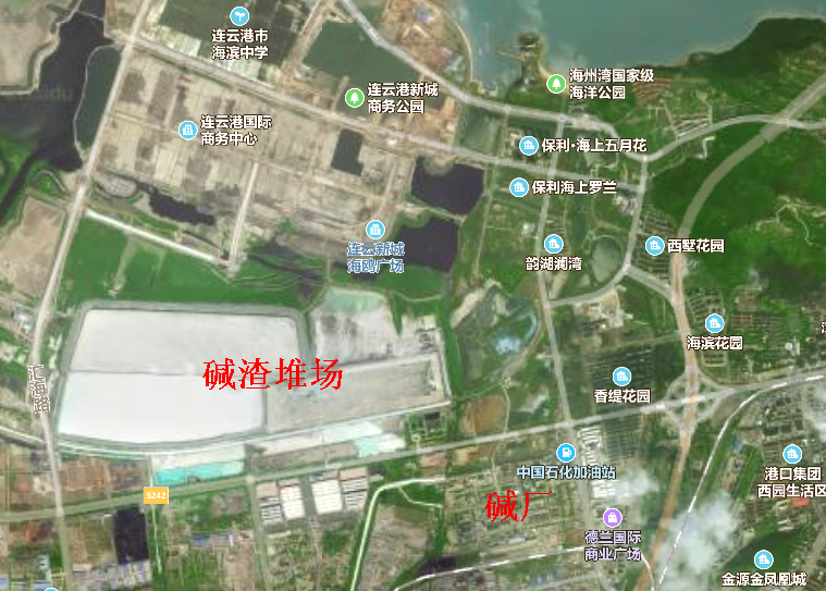 连云港碱厂与碱渣堆场的卫星图。占地约6000亩的碱渣堆场,愈发成为企业不能承受之重