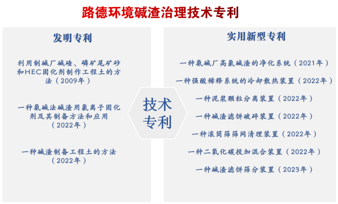 公司碱渣治理技术共获得3项国家级发明专利和7项实用新型专利