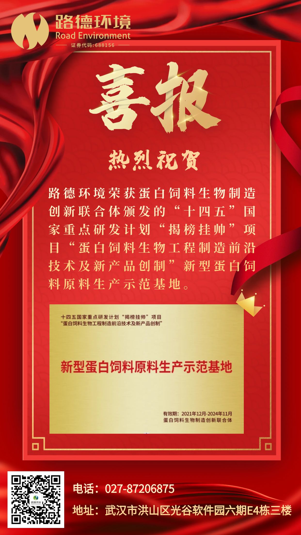 【乐鱼(中国)·喜报】乐鱼(中国)环境荣获蛋白饲料生物制造创新联合体颁发“新型蛋白饲料原料生产示范基地”