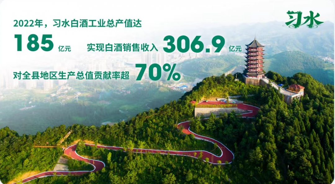 2022年,习水白酒工业总产值达185亿元,实现白酒销售收入 306.9亿元,对全县地区生产总值贡献率超70%,对规模以上工业增加值贡献率超91%,是当之无愧的首位度主导产业,进一步夯实了习水争创中国百强县的产业基础。