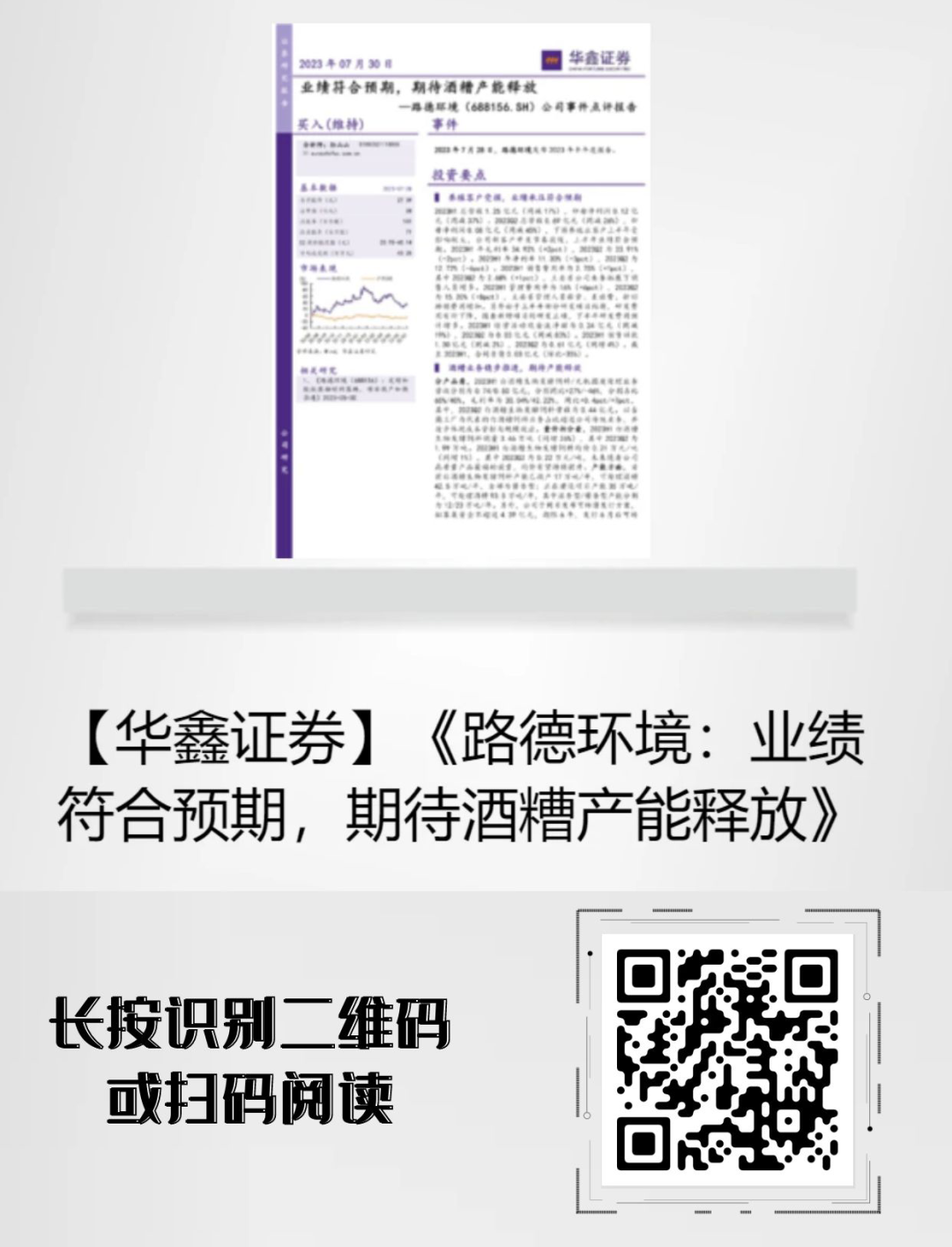 【点评报告】华鑫证券点评乐鱼(中国)环境:业绩符合预期,期待酒糟产能释放
