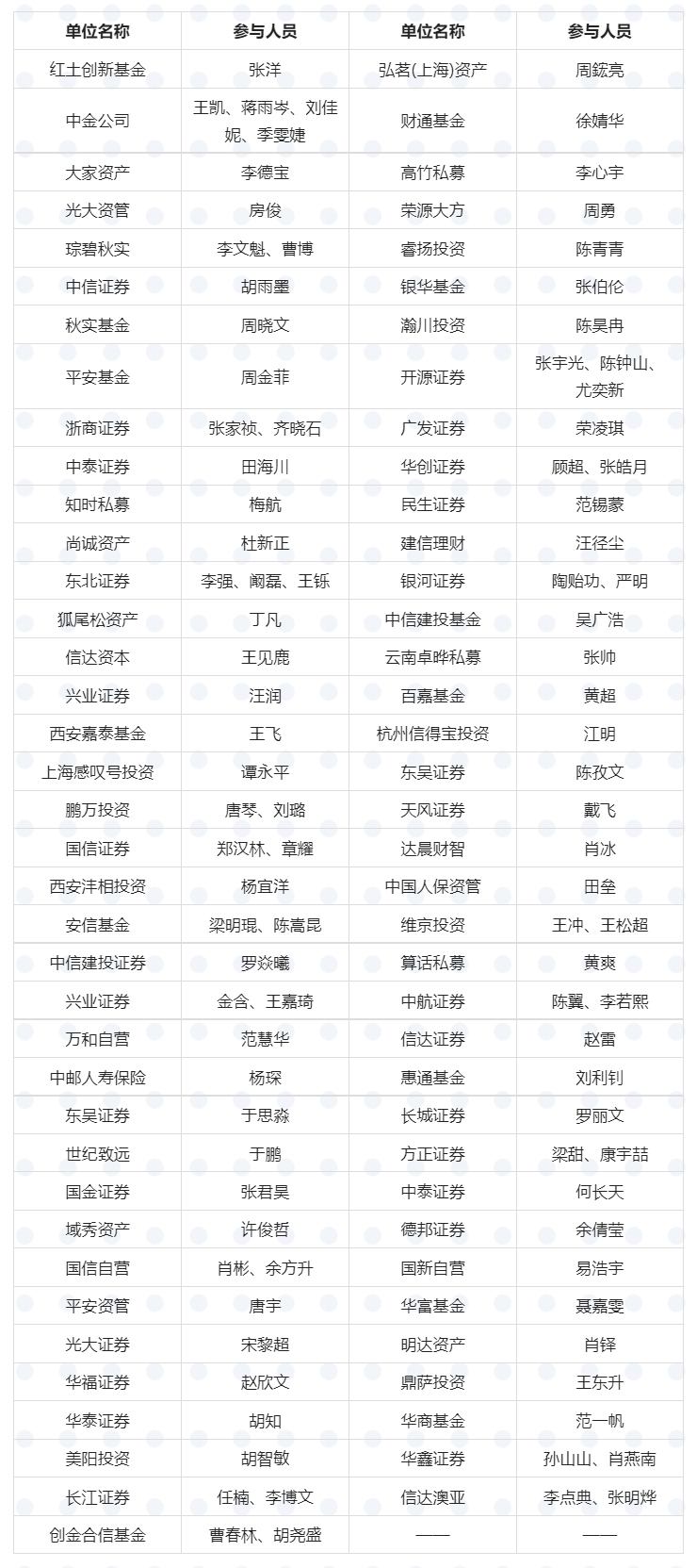 【附】乐鱼(中国)环境投资者交流活动单位及参会人员清单