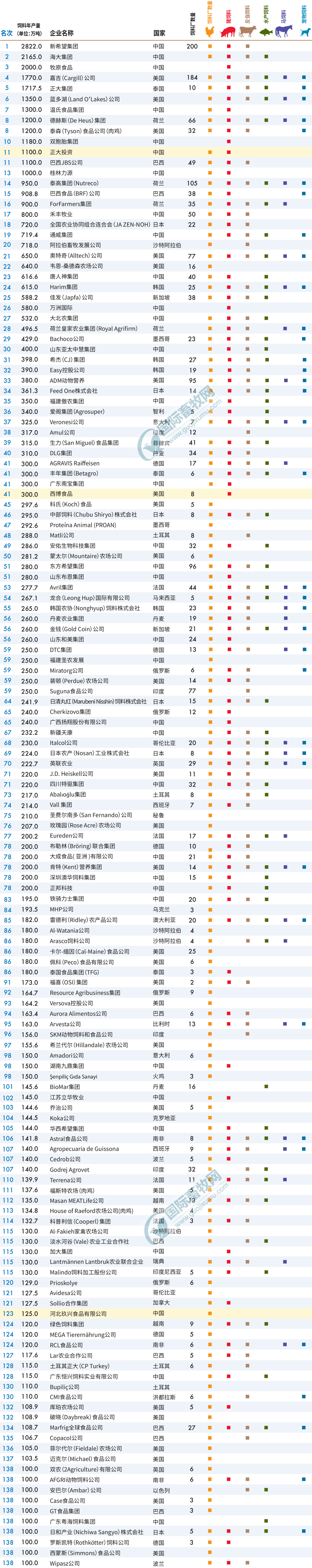 【行业观察】2022年全球147家顶尖饲料企业产量超5.38亿吨,中国上榜34家