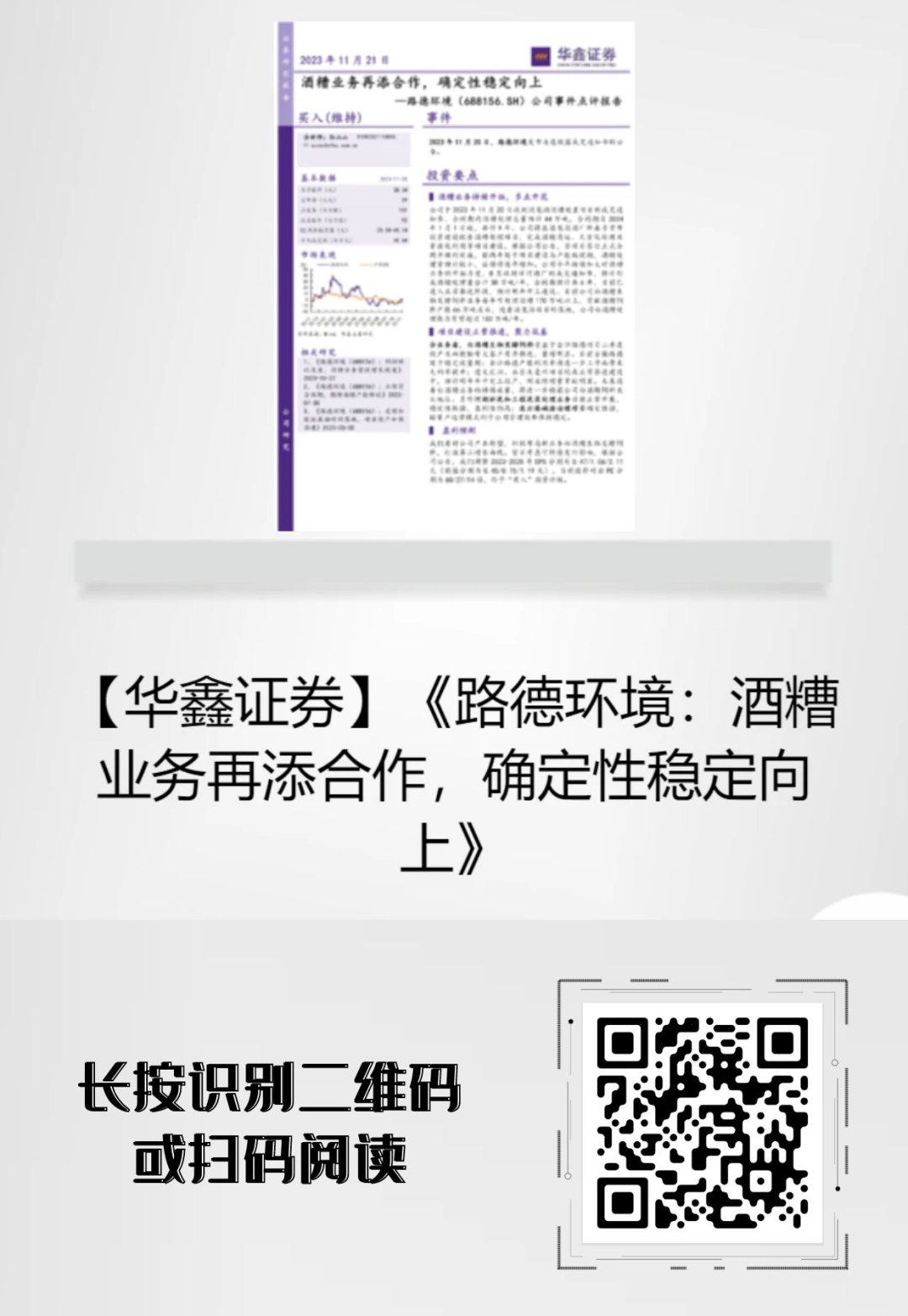 2023年11月20日,乐鱼(中国)环境自愿披露收到酒鬼酒股份有限公司酒糟处置项目《成交通知书》的公告,华鑫证券发布点评报告,对该事件进行点评分析,并对公司未来发展前景给予肯定。