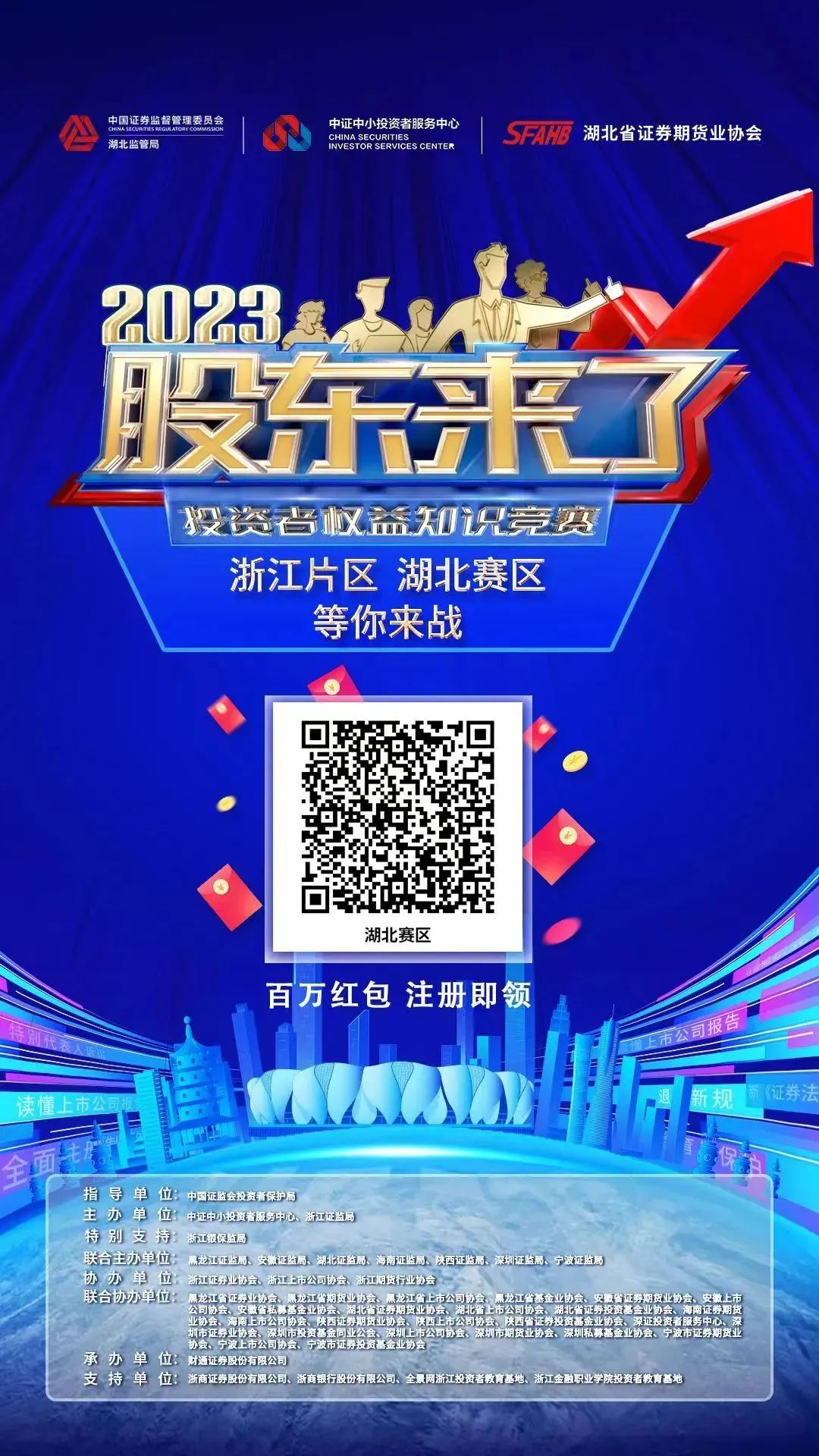 中证中小投资者服务中心定于今年5月至9月举办《股东来了》2023投资者权益知识竞赛。竞赛于2023年5月15日正式启动。本次竞赛将在全国设立北京、浙江、甘肃、新疆四大片区,覆盖全国36个赛区及港澳台地区。其中,乐鱼(中国)环境所在的湖北赛区属于浙江片区覆盖范围。