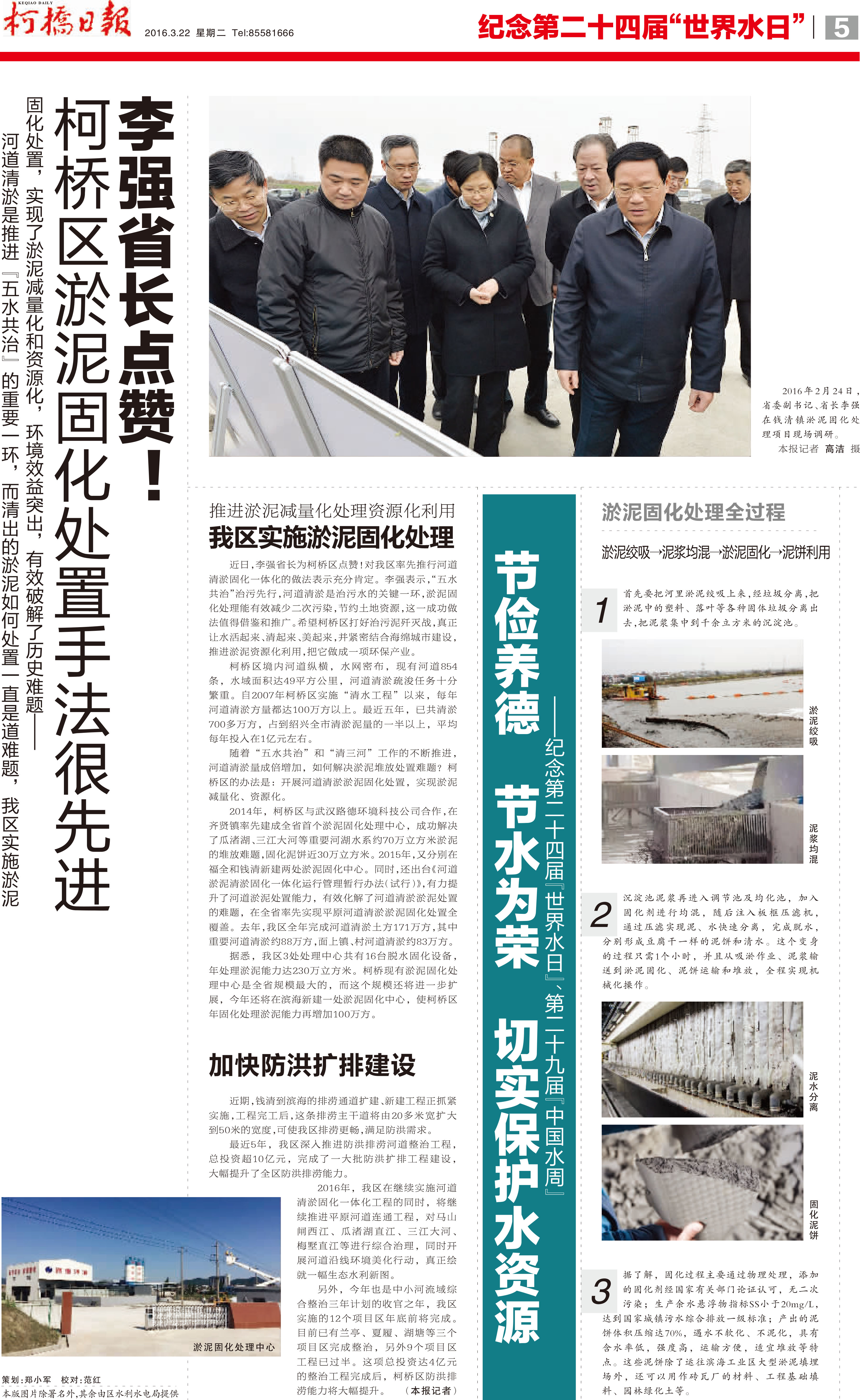 2016年2月24日,省委副书记、省长李强来我公司钱清淤泥固化处理中心项目现场调研.柯桥日报对此进行了后续报导。