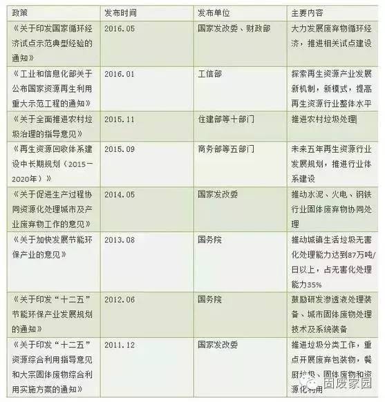 固废领域随着近年来相关政策的连续出台,固废处理市场逐步打开。《关于加快发展节能环保产业的意见》、《最高人民法院、最高人民检察院关于办理环境污染刑事案件适用法律若干问题的解释》以及《再生资源回收体系建设中长期规划(2015-2020)》等政策法规强有力推动了固废相关领域的发展。