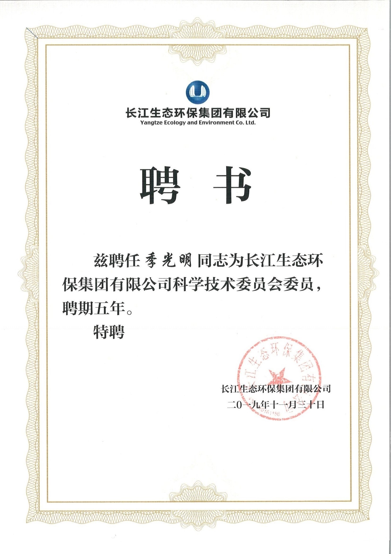季光明董事长获聘长江生态环保集团有限公司科学技术委员会委员