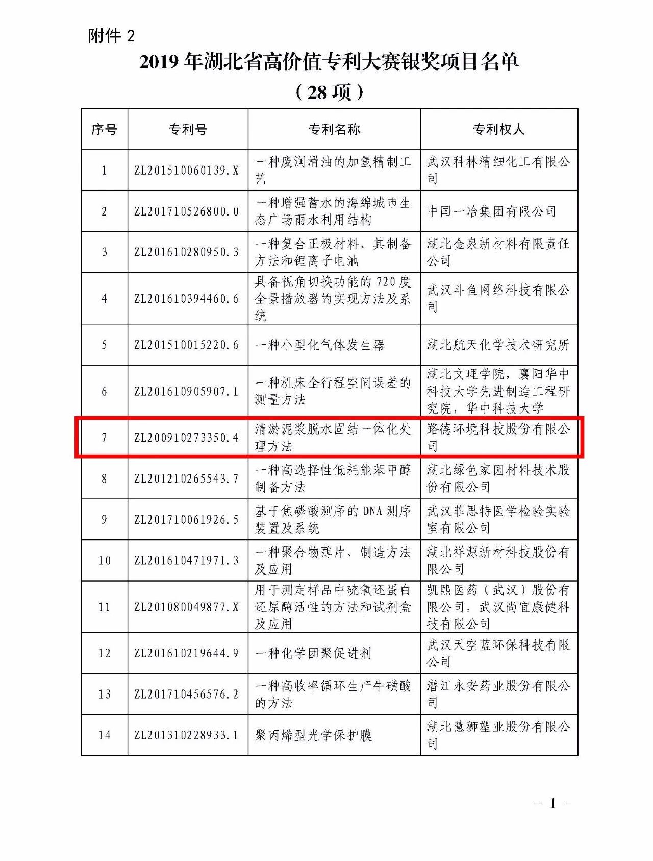 6月12日,湖北省知识产权局公布2019年湖北省高价值专利大赛结果。leyu乐鱼·官方web站登录入口呈报的《清淤泥浆脱水固结一体化处理方法》荣获2019年湖北省高价值专利大赛银奖。