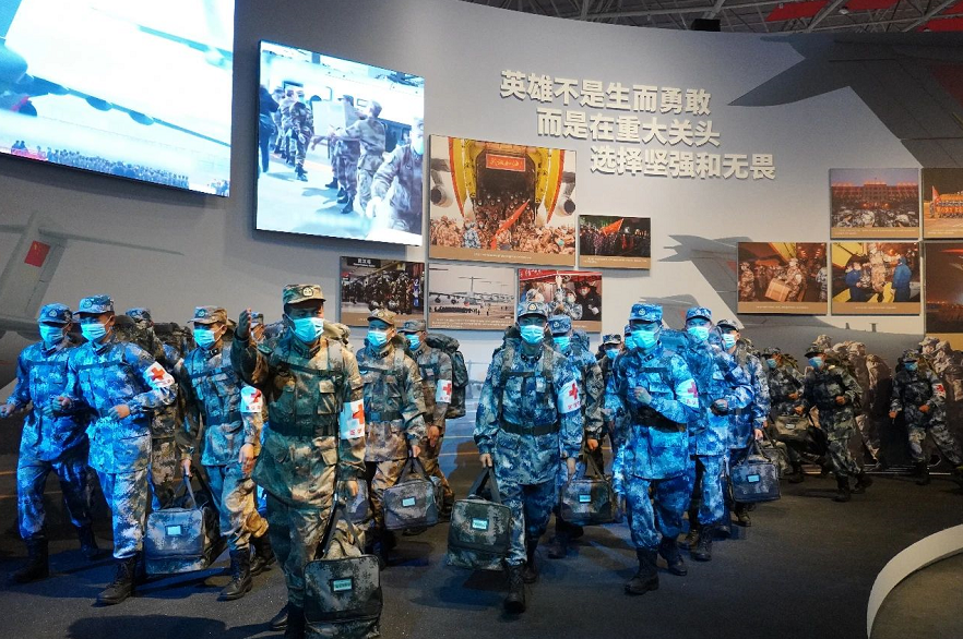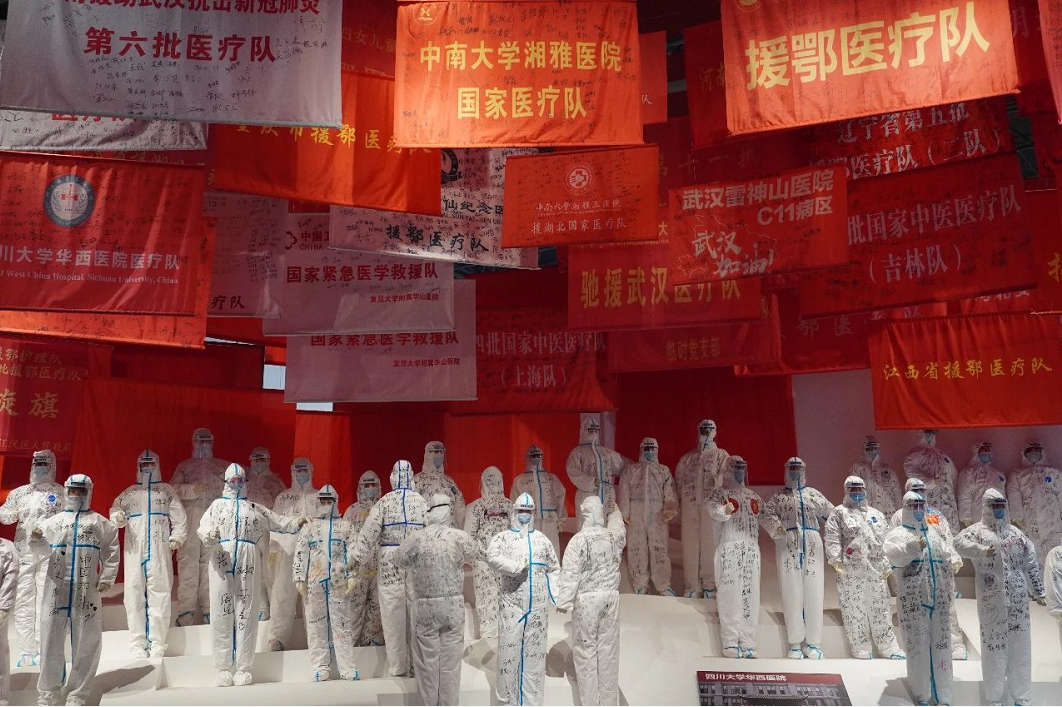 武汉市抗疫展览馆内,6个主题展区、1100余张照片、45个视频、1000余件实物展品……,正是用一件件物品、一张张照片,带领人们回到了年初波澜起伏的数月。一幅幅写实抗疫照片以及专门复原的雷神山医院、方舱医院等实物场景,集中展示了英雄的武汉人民在党中央的坚强领导下进行抗疫斗争的鲜活场景和感人事迹,瞬间把大家的思绪拉回到了那场惊心动魄、没有硝烟的战役中。集中展示了以习近平同志为核心的党中央团结带领全国人民打赢疫情防控的人民战争、总体战、阻击战的伟大历程。