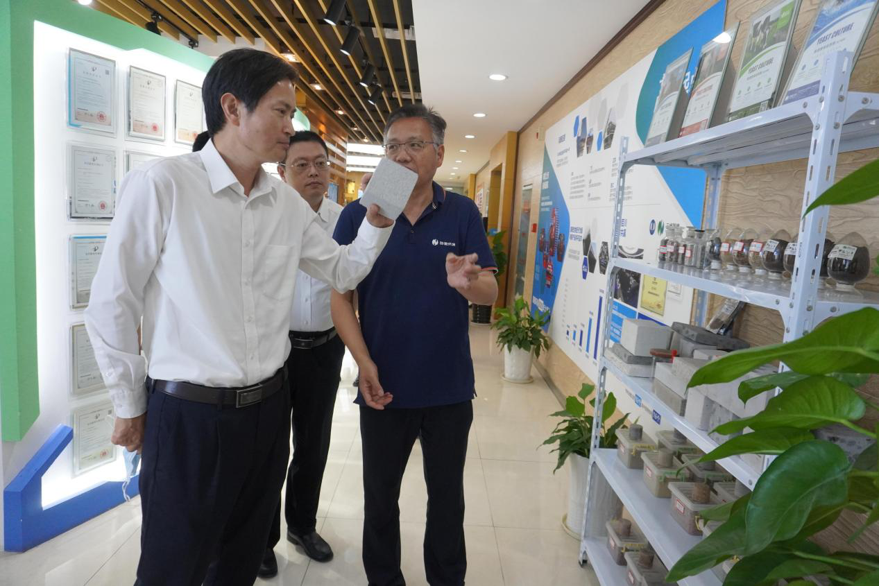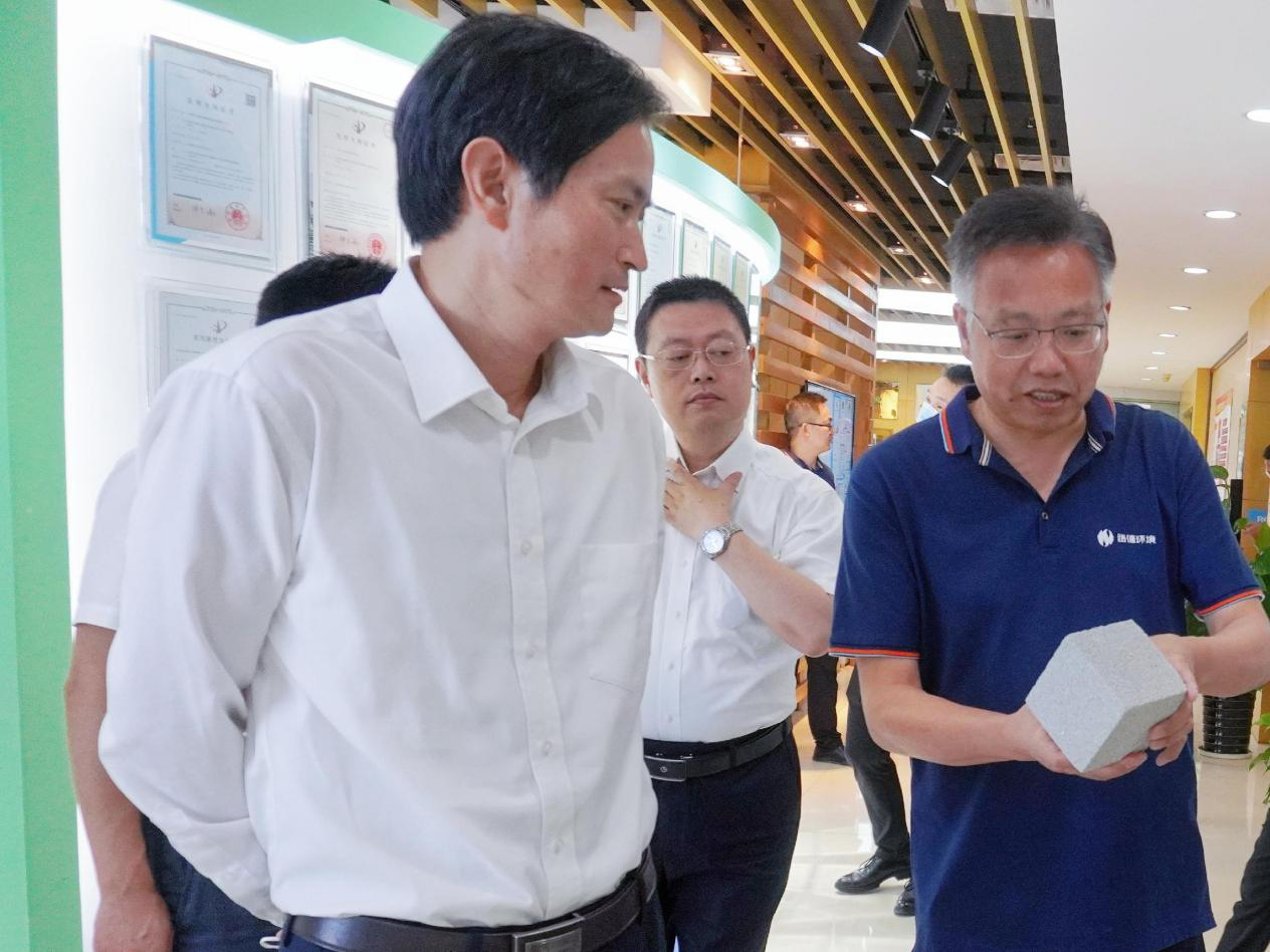 季晓东在脱水泥饼资源化利用展台前停留并拿起一块蒸压加气混凝土砌块掂量了一下,称这种新型墙材砖很轻。季光明介绍,这块加气块的泥饼掺量达到30%以上,替代了传统材料中粉煤灰、沙石中的有效成分,该项技术属国内首创。经多年研发,乐鱼(中国)环境因地制宜打造了“泥饼资源化利用”的完整产业链,将泥饼制备成工程土、绿化种植土、新型节能墙材等,有效解决泥饼出路,实现固体废物“零排放”。公司成立十余年来,专注于水环境治理及固体废弃物减量化、无害化、稳定化处理与资源化利用,已形成了河湖淤泥、工程泥浆、市政污泥、工业糟渣、工业污水等领域的专业解决方案。