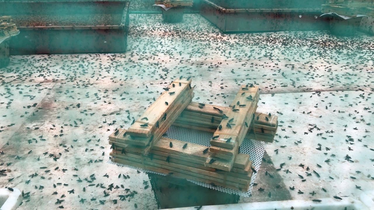 (1)采用仿生环境的昆虫培育技术,全年均可产卵,且虫卵孵化率、存活率及卵虫比均有较大优势。